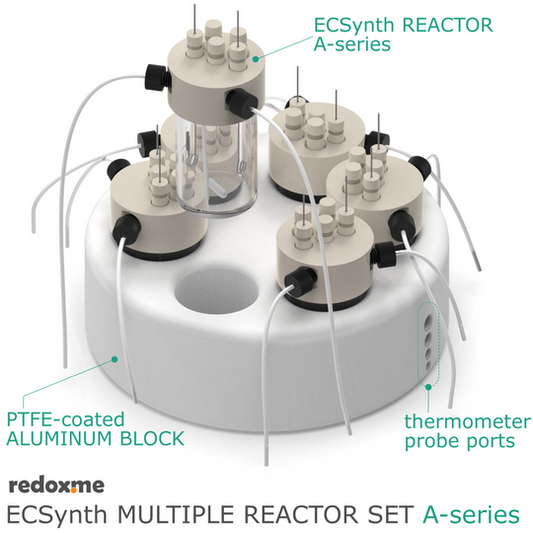 Electrosynthesis Multiple Reactor Set consists of a selected number of Electrosynthesis Reactors from A-series or A-series/septa, and PT...