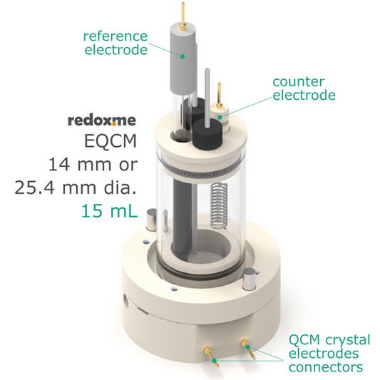 This is a stationary solution voltammetry cell for simultaneous measurements of electrochemical response and Quartz Crystal Microbalan...