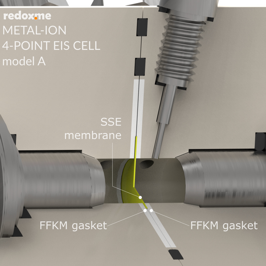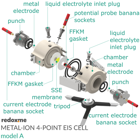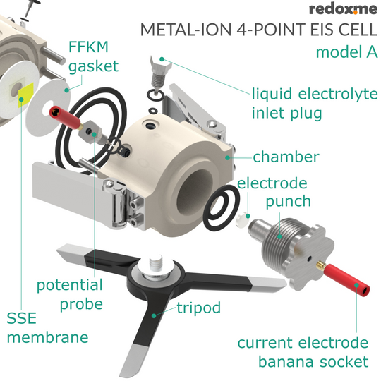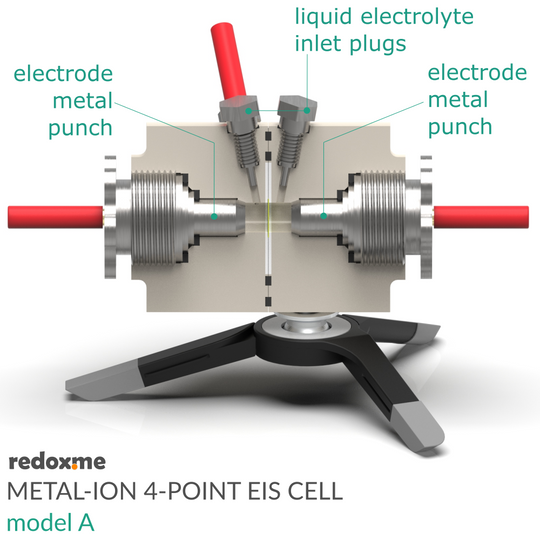 METAL-ION 4-POINT ELECTROCHEMICAL IMPEDANCE SPECTROSCOPY CELL, MODEL A