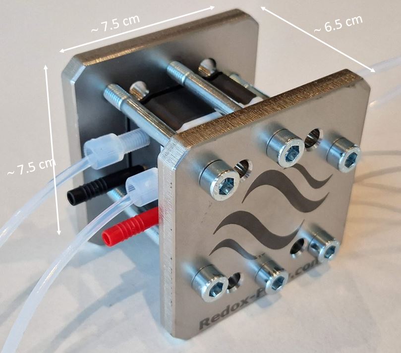 DESCRIPTION: This is a multi-functional cell intended as an add-on to an flow battery test setup with two fundamental assembly/application principles.