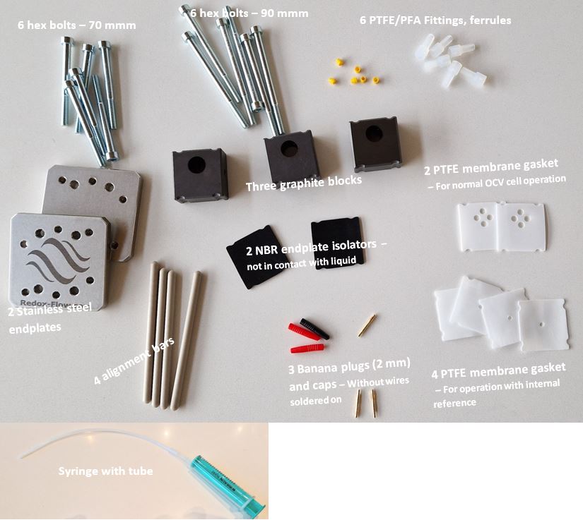 - Electrolyte only gets in contact with graphite materials and corrosion resistant tubing/fittings