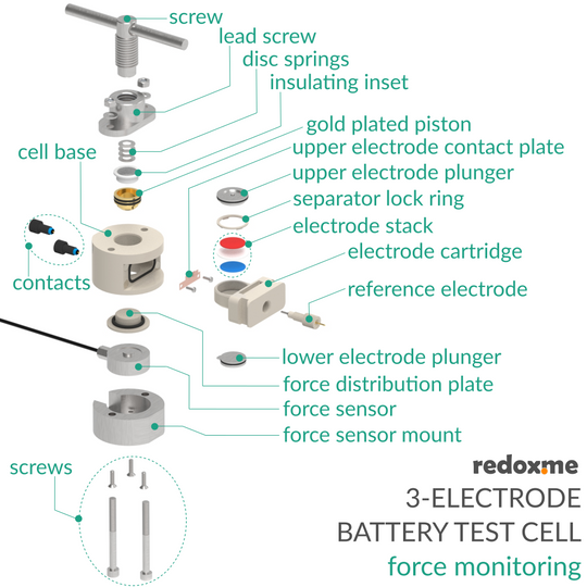 THREE ELECTRODE BATTERY TEST CELL – FORCE MONITORING